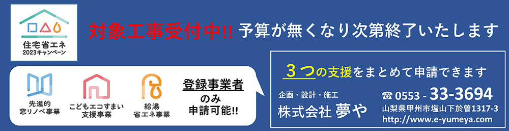 新築、増改築、リフォーム工事の事なら山梨県甲州市塩山の工務店「株式会社夢や」へ。デザイナーの住宅設計も承っております。