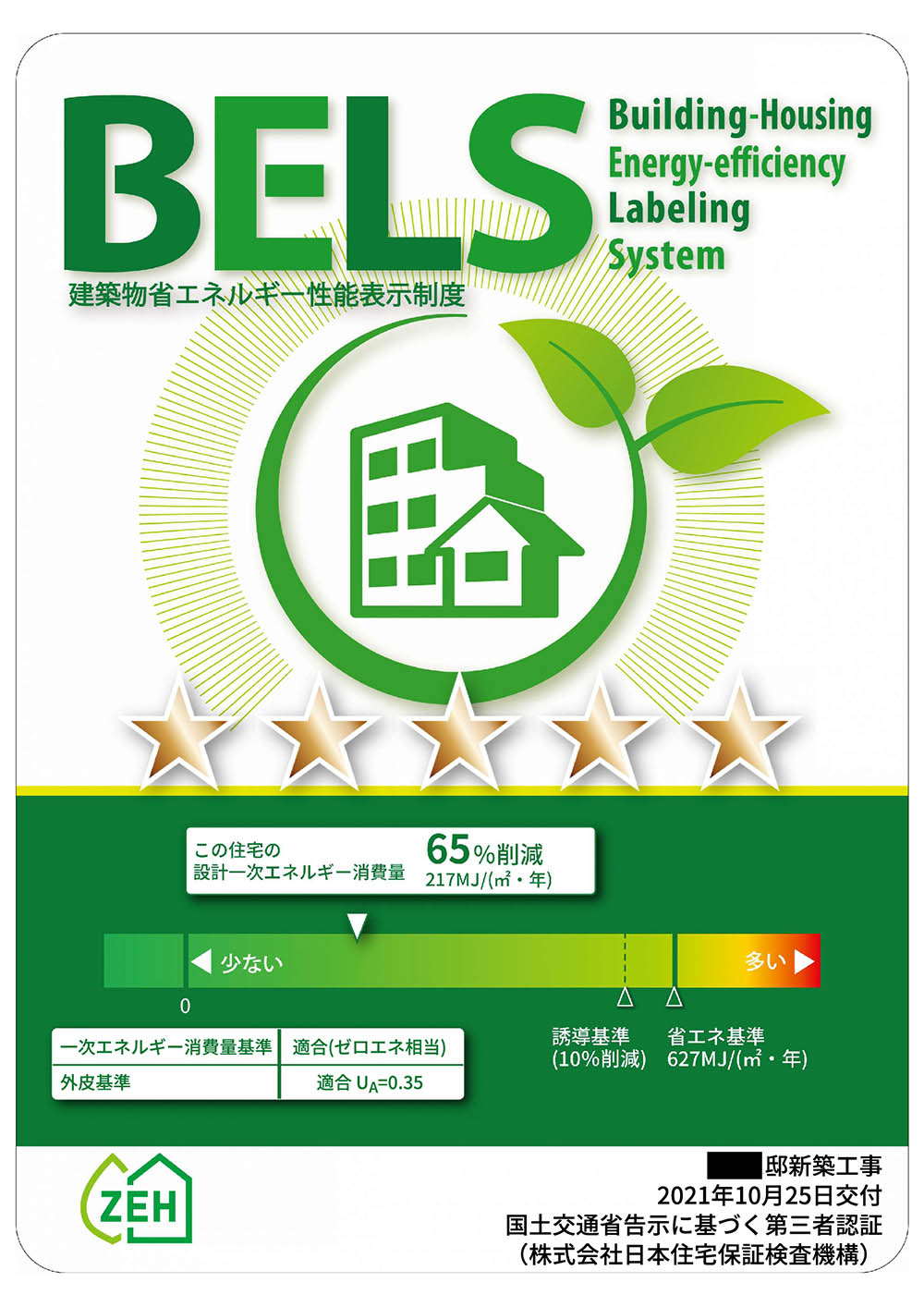 - 現在新築工事中のゼロ・エネルギー住宅の評価書です。UA値0.35。建築物のエネル